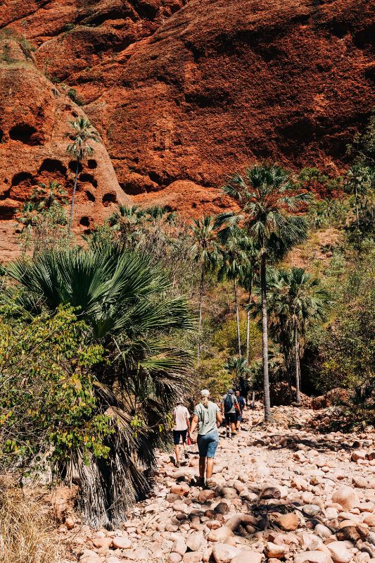 DIFFICULTY: This is a moderate to difficult 2km return walk from the carpark along a creek bed of large, loose rocks and has small ladders with double handrails. This walk requires a higher level of mobility than the Cathedral Gorge Walk.